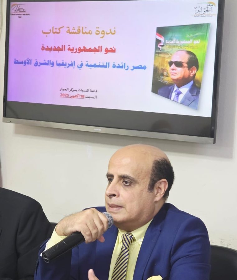 شهد مركز الحوار للدراسات السياسية والإعلامية ندوة فكرية موسعة لمناقشة كتاب “نحو الجمهورية الجديدة.. مصر رائدة التنمية في إفريقيا والشرق الأوسط” للمفكر والأستاذ الدكتور إبراهيم عز الدين، بحضور نخبة من الشخصيات العامة والخبراء في السياسة والاقتصاد والتنمية.
