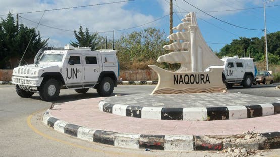 سيارة تابعة للأمم المتحدة بمنطقة الناقورة على الحدود اللبنانية الإسرائيلية