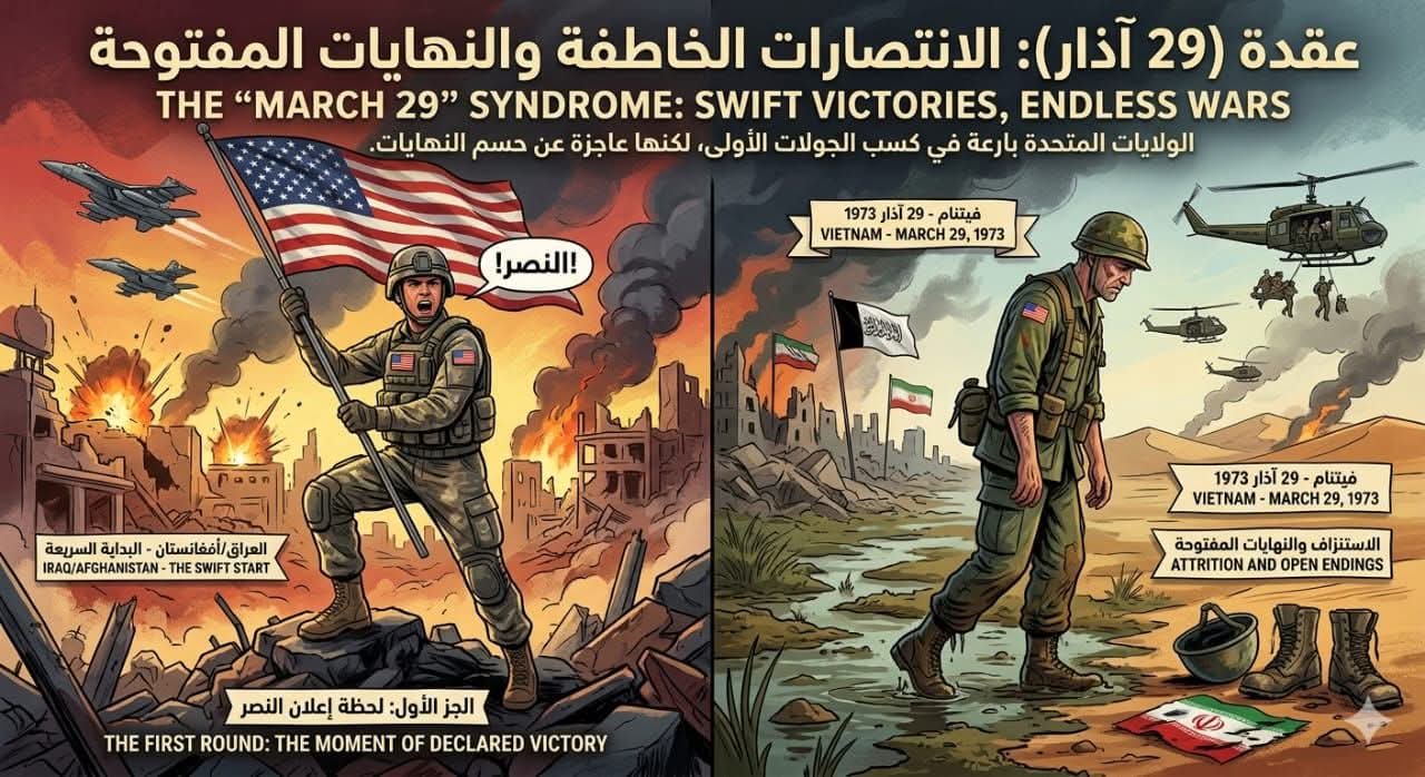 * فيتنام (ذكرى اليوم): دخلت واشنطن بجيش عرمرم، فخرجت في 29 آذار بعد أن فقدت 58,000 جندي، تاركةً خلفها درساً مفاده أن “كثافة النيران لا تصنع انتماءً”.