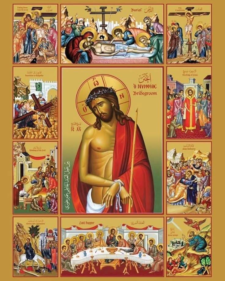 في الأيام الأولى من الأسبوع — مساء الأحد، والاثنين، والثلاثاء — تحتفل الكنيسة بخدمات “الختن”. توضع في وسط الكنيسة أيقونة المسيح مكلّلًا بالشوك، ونسمع: “ها هوذا الختن يأتي في نصف الليل”. هنا الدعوة إلى السهر الروحي، إلى الاستعداد الداخلي، لكي لا تُوجَد النفس نائمة حين يأتي الرب.